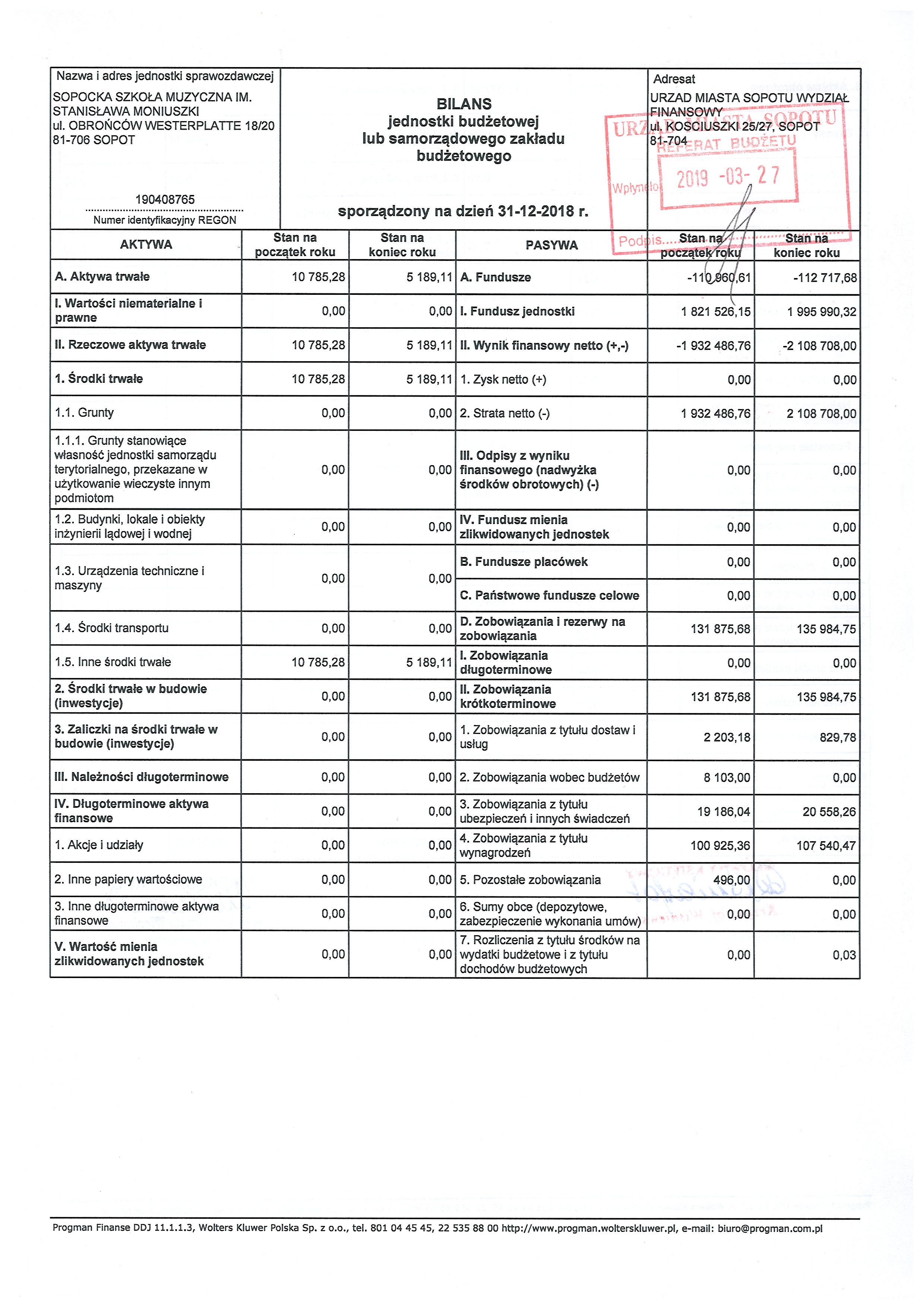 bilans za rok 2018