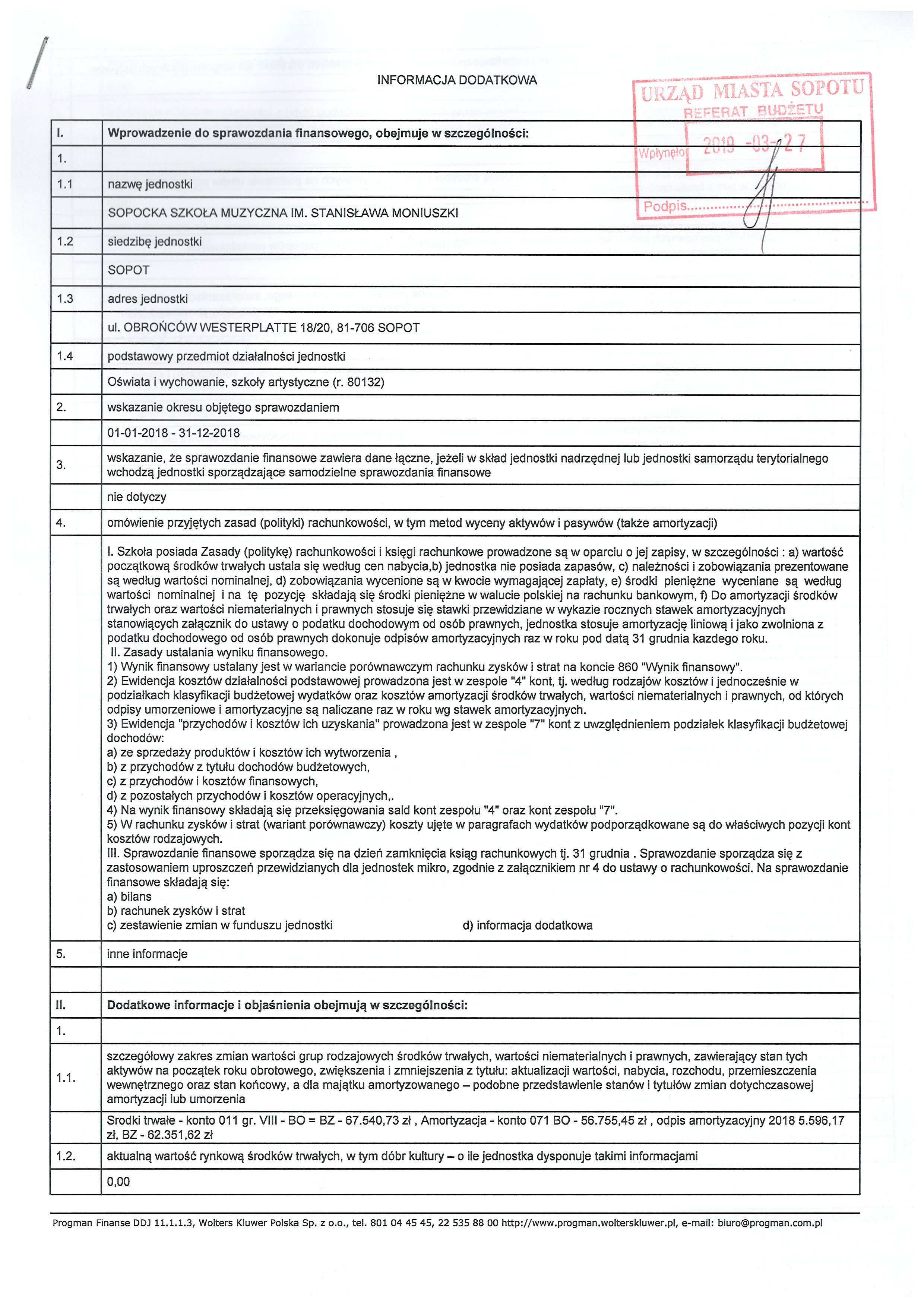 informacja dodatkowa za rok 2018