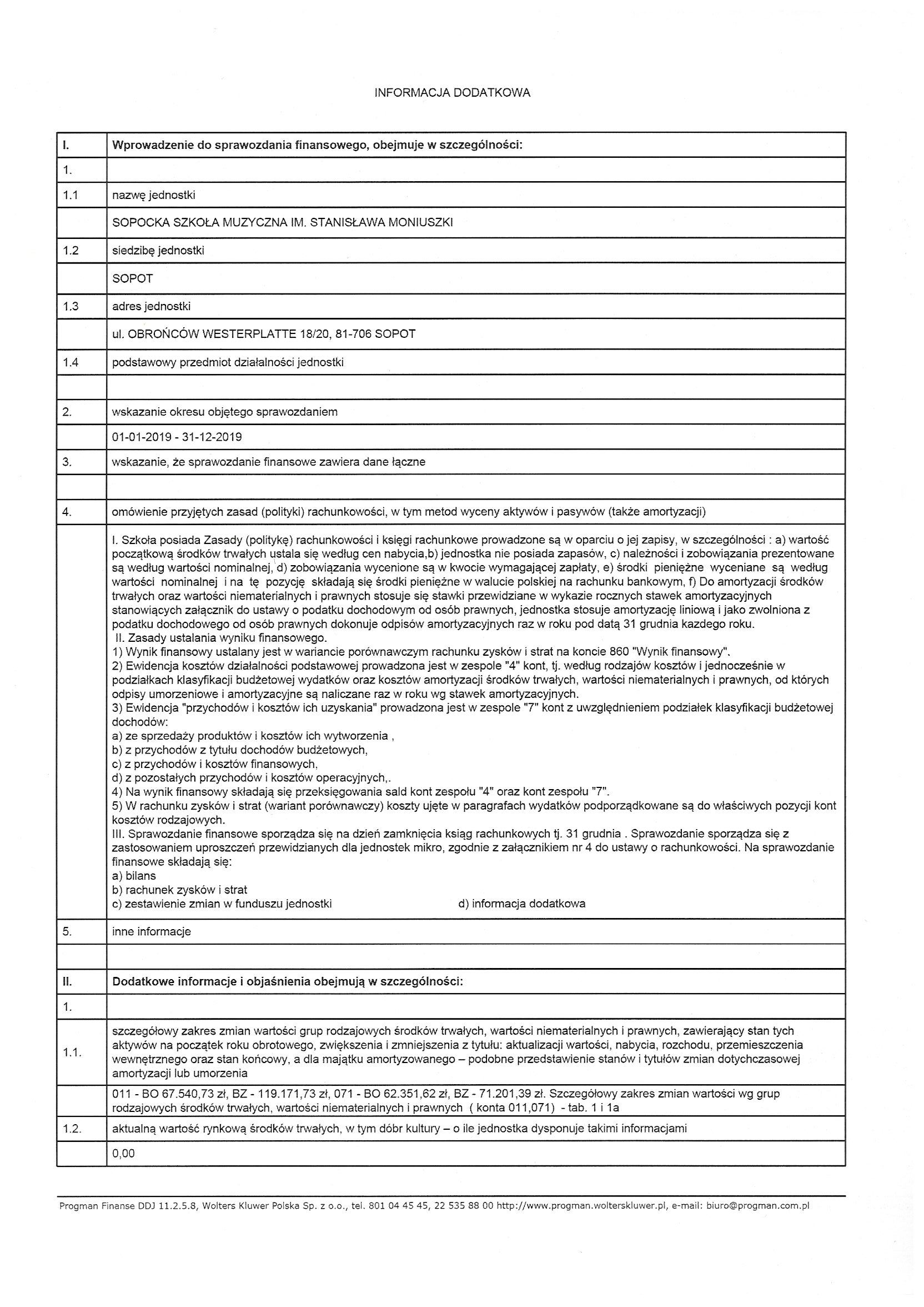 informacja dodatkowa za rok 2019