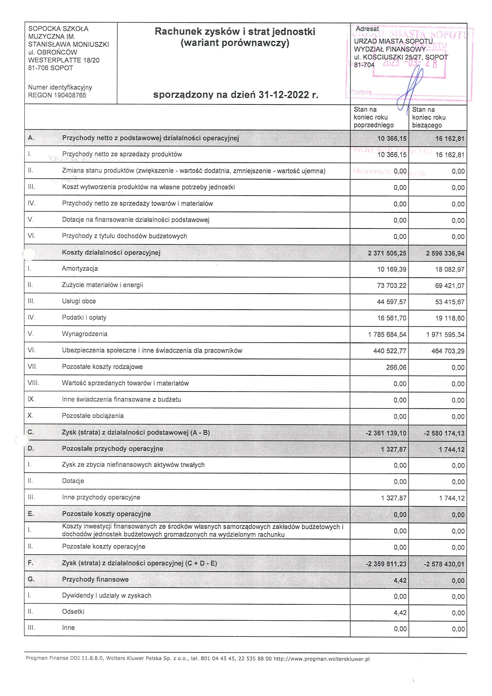 rachunek zysków i strat za rok 2022