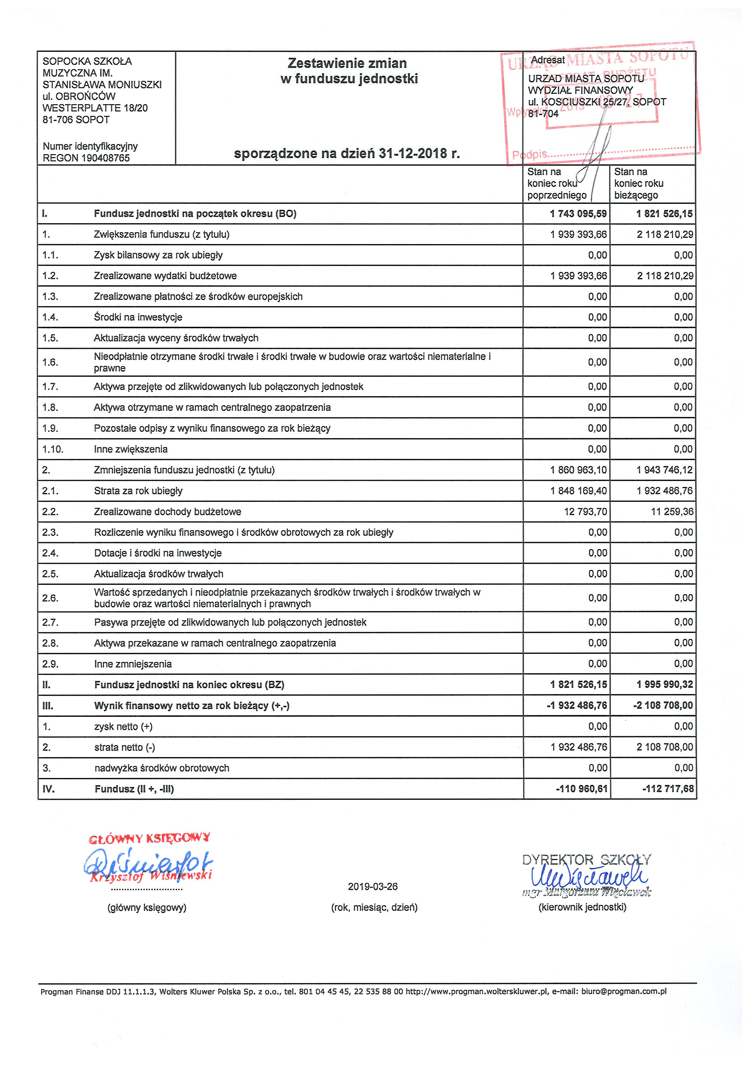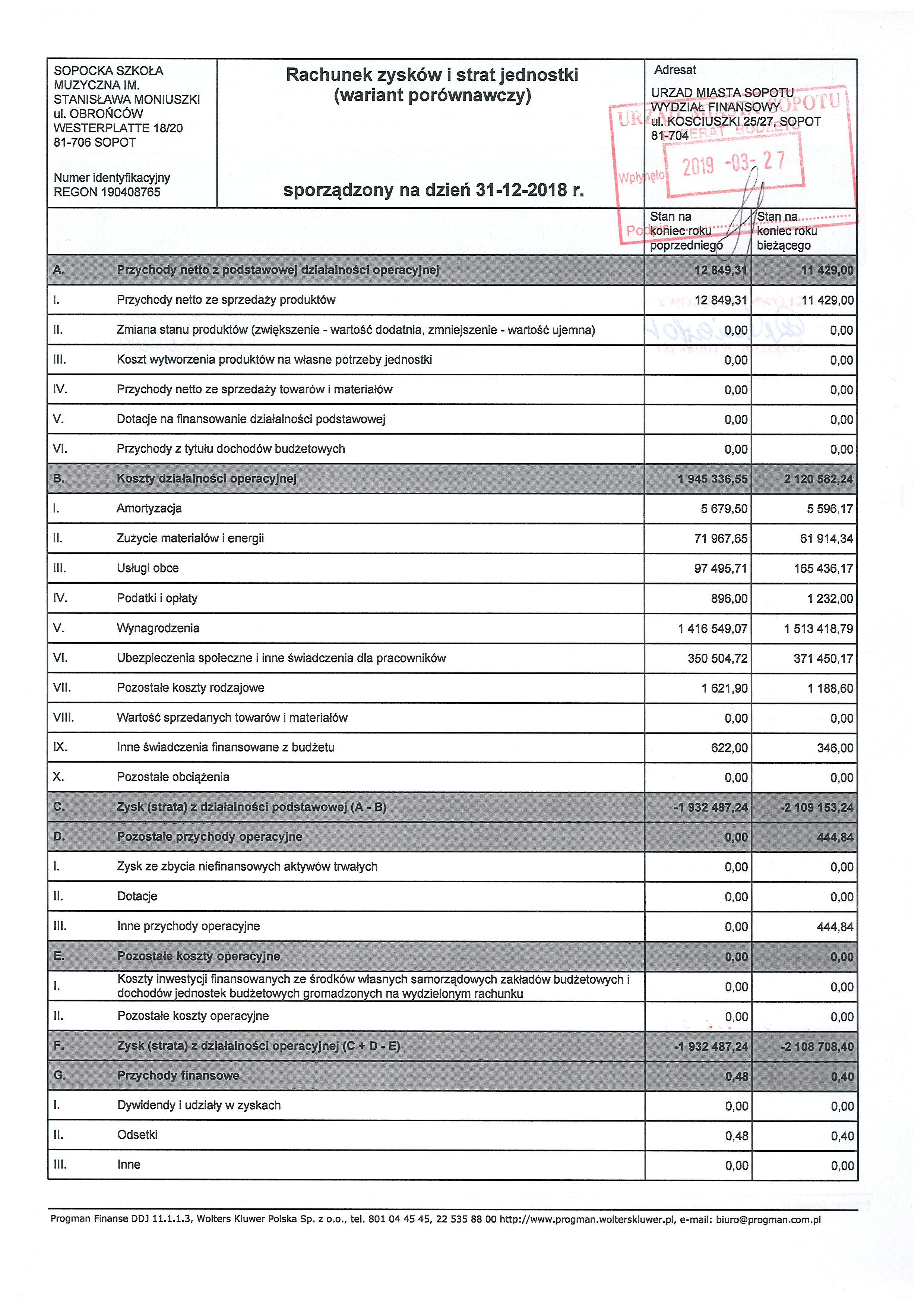 rachunek zysków i strat za rok 2018