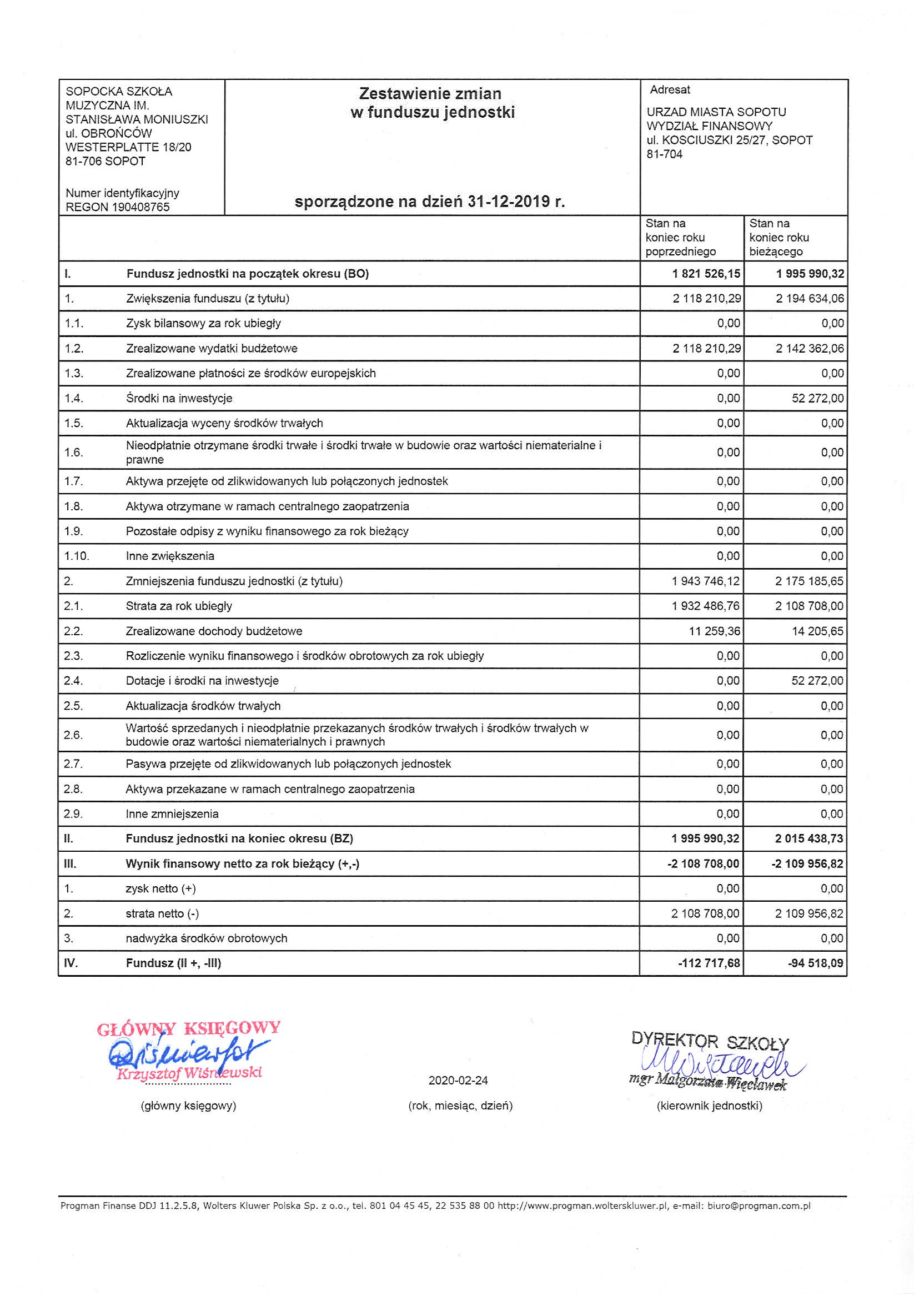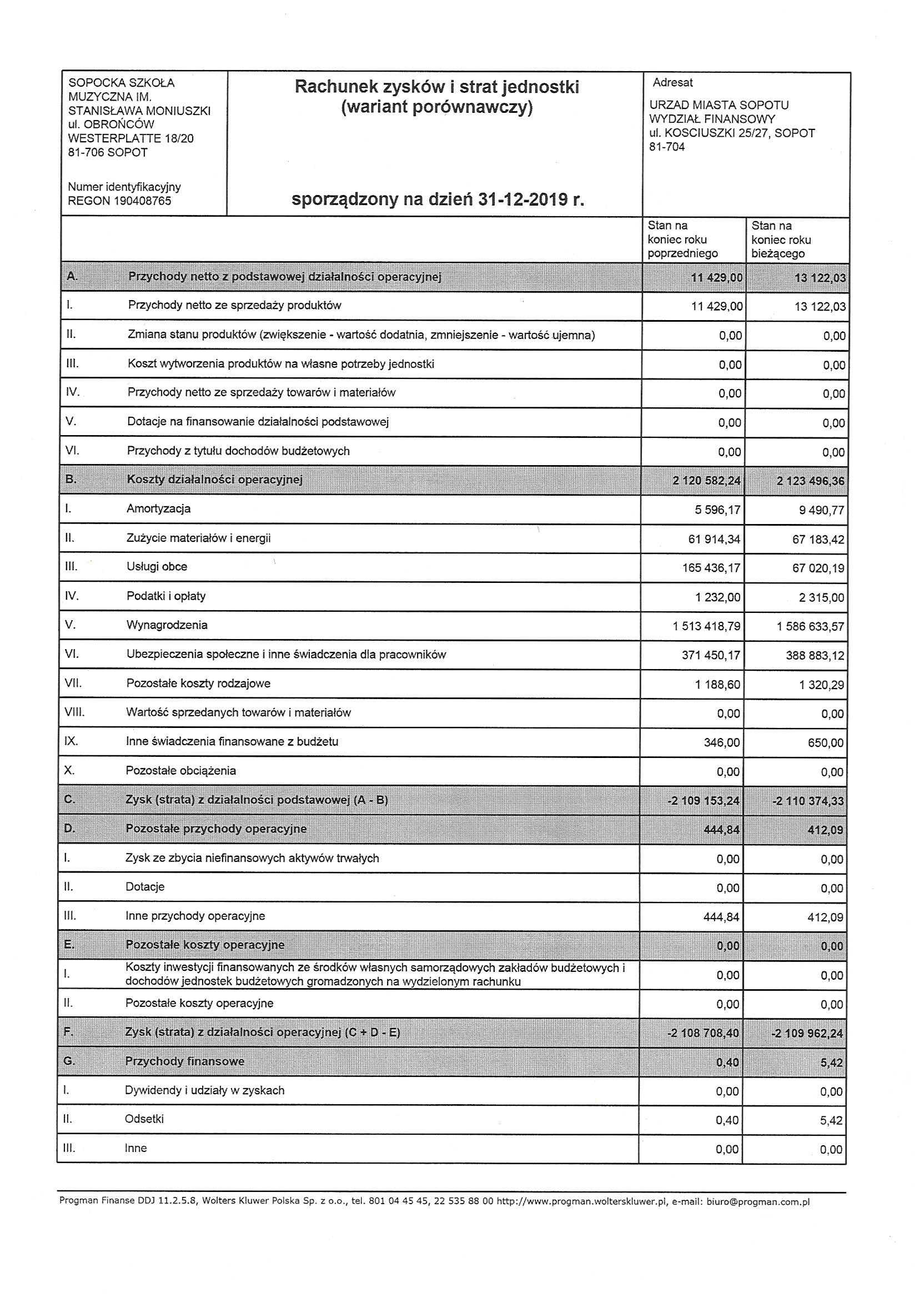rachunek zysków i strat za rok 2019