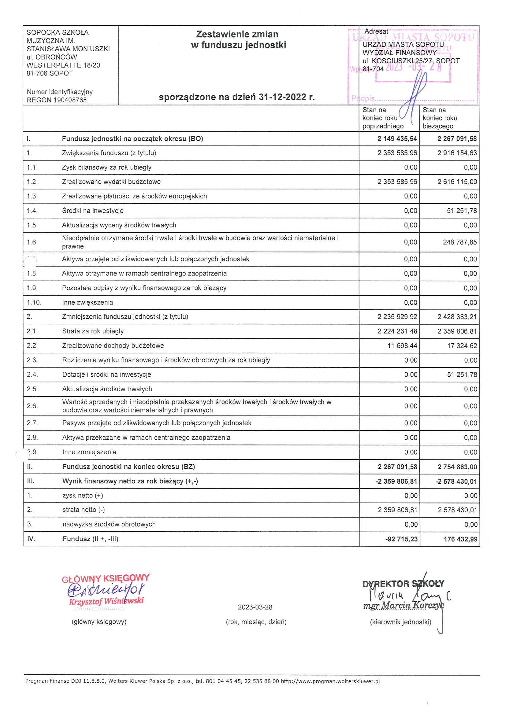 zestawienie zmian w funduszu jednostki za rok 2022
